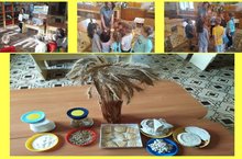 Задачи: познакомить детей с тем, как выращивали хлеб в старину; обобщить и систематизировать знания детей о хлебе, о пути хлеба от колоса до булки; воспитывать у детей уважение к людям труда (хлеборобам, пекарям), бережливое отношение к хлебу. Бурычлар: балаларны борынгы икмәкне ничек үстерүләре белән таныштыру; балаларның икмәк, башактан күмәч юлы, икмәк турында белемнәрен гомумиләштерү һәм системага салу; балаларда хезмәт кешеләренә (игенчеләргә, пешерүчеләргә) хөрмәт тәрбияләү, икмәгә сакчыл караш тәрбияләү.