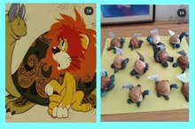 Конструирование "Черепашка" по мотивам мультфильма "Как Львенок и Черепаха пели песню". Задачи: учить детей использовать природный материал в поделках, делить кусок пластилина на части, закрепить навыки скатывания пластилина, вытягивания, развивать мелкую моторику рук, творчество. Бурычлар: балаларны табигый материалдан эшләнмәләр ясарга, пластилин кисәген кисәкләргә бүләргә, пластилинны кисү, тарту күнекмәләрен ныгытырга, кулларның вак моторикасын, иҗатын үстерергә өйрәтү.
