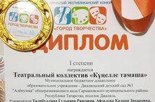 Наш театральный коллектив воспитанников «Күңелле тамаша» награжден Дипломом 1 степени в номинации «Спектакль» (младшая возрастная группа) открытого Республиканского конкурса «Город творчества». Поздравляем наших детей-артистов, руководителей театрального кружка Талибуллину Г.Р., Афзалову К.З. и желаем в дальнейшем творческих успехов! 19.12.2019