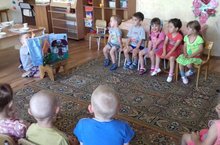 27.07.2018г. В рамках недели «Мы любим книги» воспитанники старшей группы показали пальчиковый театр «Лиса, Заяц и Петух» детям второй младшей группы / «Без китаплар яратабыз» дип исемләнгән атналык уңаеннан зурлар төркеме балалары икенче кечкенә төркеменә «Төлке, Куян һәм Әтәч» бармак театры күрсәттеләр. 27.07.2018