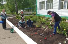 Посадили много разных цветов на участке нашего детского сада/Балалар бакчасы участогына төрледән-төрле чәчәкләр утырттык.
