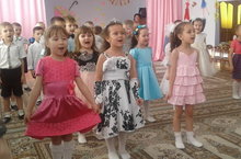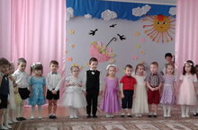 Менә бүген дә без Бөек Җиңүнең 73 еллыгын зурлап билгеләп үттек. Бәйрәм Арслан Сибгатуллин башкаруында “Священная война” җырын тыңлаудан башланды. Малайлар, хәрби киемнәр киеп, сугыш тормышыннан сценкалар күрсәтеп, үзләрен элемтәче, танкист һәм разведчик булып хис иттеләр, “Десантниклар” биюен башкардылар. Ә кызлар, кулъяулыклар тотып, вальс биеделәр. Тантаналы рәвештә балалар татар һәм рус телләрендә шигырьләр сөйләделәр, «Солдатлар», «Защитим страну свою», «Вот мы какие» җырларын башкардылар. Сугышта һаләк булган геройларның данын бер минутлык тынлык белән искә алдык. Бәйрәмебез “Һәрвакыт булсын кояш” җыры белән тәмамланды.