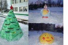 Скульптуры из снега – зимнее оформление территории детского сада.