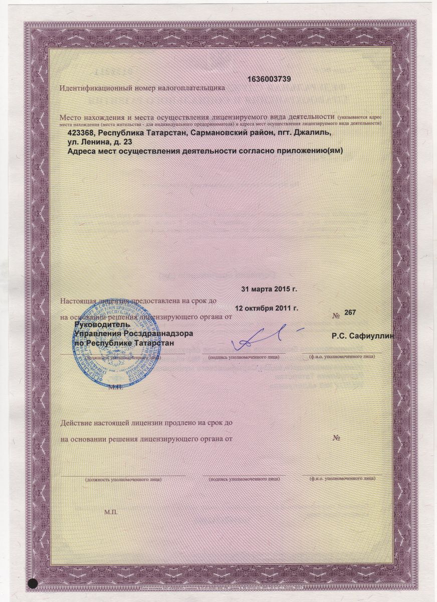 Лицензия на осуществление медицинской деятельности (обр.сторона)