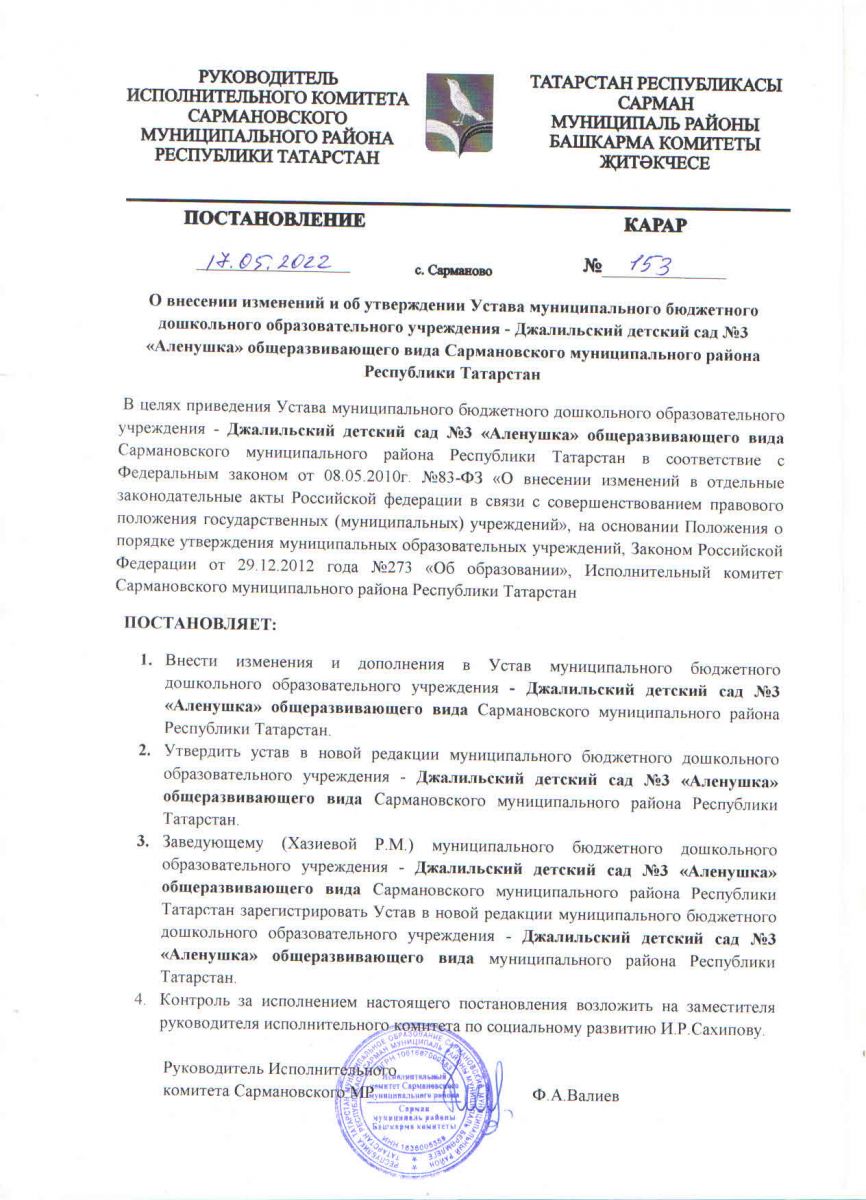 Постановление ИК СМР РТ №153 от 17.05.2022г.
