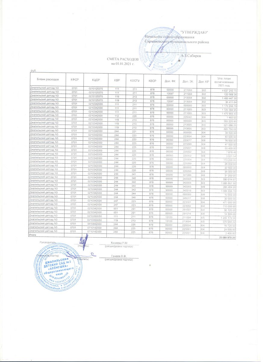 Cмета расходов на 01.01.2021г.