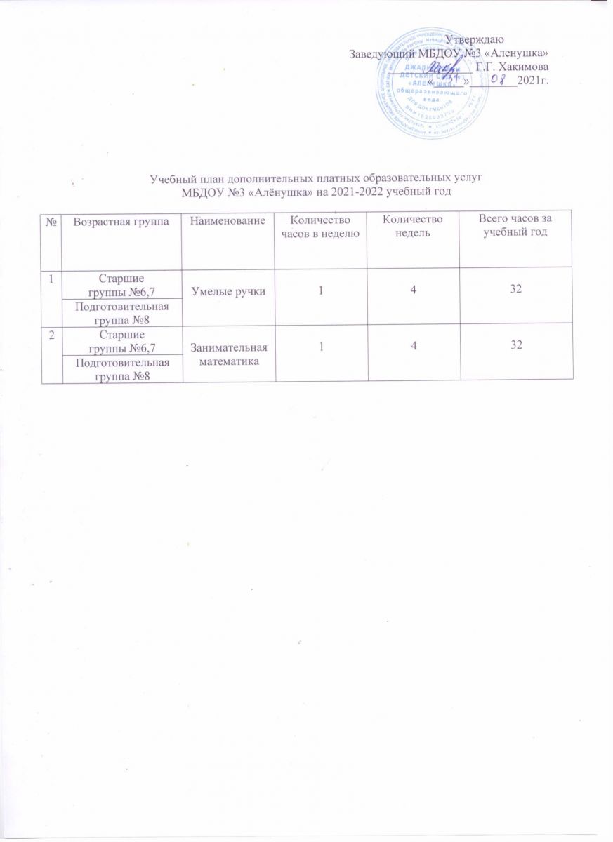 Программа дополнительного образования МБДОУ №3 "Алёнушка" на 2021-2022 учебный год