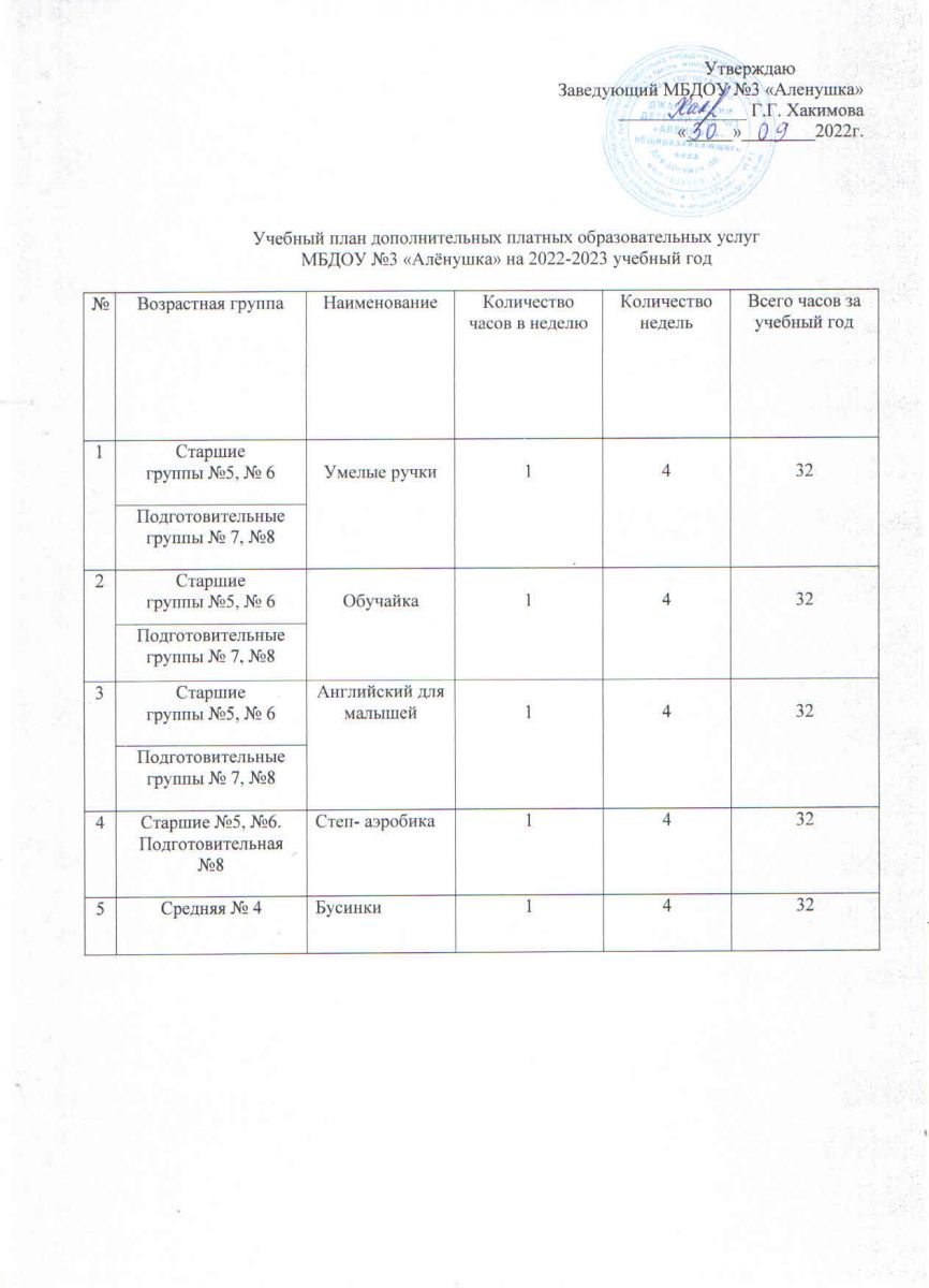 Программа дополнительного образования МБДОУ №3 "Алёнушка" на 2022-2023 учебный год
