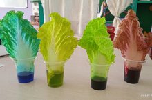 Сегодня с детьми группы"Почемучки" провели опыты. Узнать движется ли вода по растениям? Листья пекинской капусты окрасились в цвета пищевого красителя, значит, вода движется по растениям.