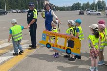 С целью профилактики детского дорожно-транспортного травматизма воспитанники старшей группы приняли участие в акции "Шагающий автобус". Вместе с представителем ГИБДД и начальником отделения ГБУ Алсу Разиновной дети закрепили знания о дорожных знаках, рассказали пешеходам о необходимости световозвращающих элементов, а также раздали памятки о правилах поведения на дороге