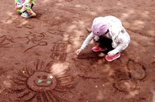 Дети знакомятся со свойствами песка (сухой, мокрый), постигают приёмы строительства из него. Действия с песком развивают мелкую моторику, ручную умелость. Создание и обыгрывание построек обеспечивает развитие детского творчества. Манипулятивные действия с песком вызывают у ребёнка чувство комфорта, удовольствия, радости, что благоприятно сказывается на работе всех функций и систем организма.