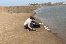 Очистка пляжной зоны пруда силами коллектива детского сада. -