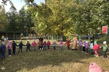 Каждый год с началом учебного года в детских садах отмечаются праздники осени. В 18 сентября на свежем воздухе были проведены осенние праздники в каждой возрастной группе. Волшебница - Осень пришла в каждую группу. Дети танцевали с осенними листочками, пели песни, играли в игры. Но и конечно - какой праздник без угощения? Осень принесла детям пирожки с яблочки. Праздник доставил радость и удовольствие.