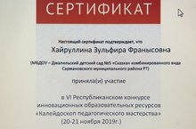 Старший воспитатель МБДОУ №5 "Сказка" участвовала в республиканском конкурсе "Калейдоскоп педагогического мастерства" по направлению "Инновационные образовательные ресурсы"