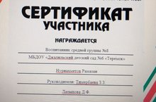 Наши педагоги Латыпова Д.Ф., Тимербаева З.З. и воспитанник средней группы Нуриахметов Рамазан участвовали в республиканском конкурсе рисунков и видеороликов "Буду бдительным на льду и на воде" среди воспитанников дошкольных образовательных организации Республики Татарстан и награждены сертификатом участника.