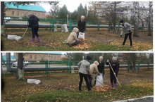 Коллектив детского сада организовал работу по уборке территории./ Балалар бакчасы коллективы якын тирәдәге территорияне коелган яфраклардан арындыра