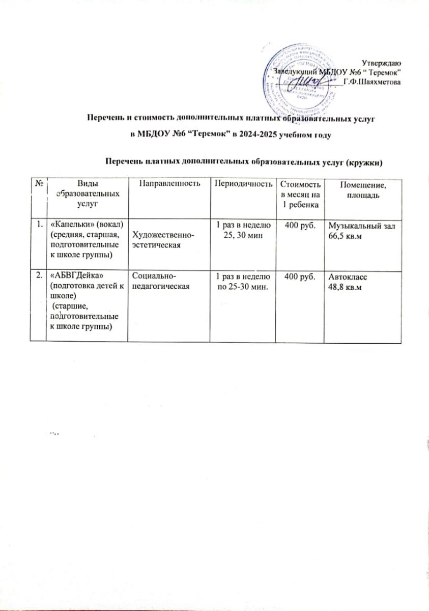 Перечень и стоимость дополнительных платных образовательных услуг на 2024-2025 учебный год.