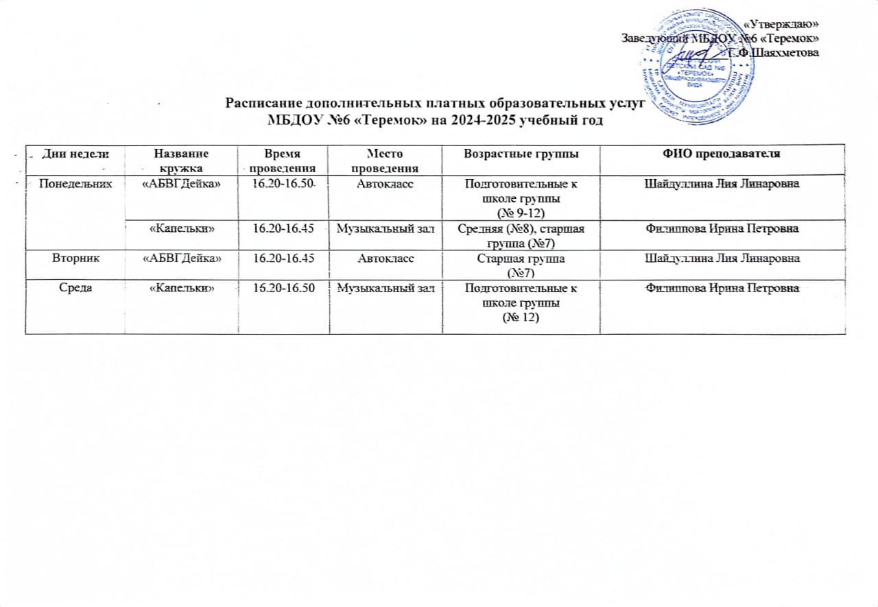 Расписание дополнительных платных образовательных услуг на 2024-2025 учебный год.