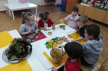 Коллективная работа в средней группе по художественно - эстетическому воспитанию на тему "Корзина для ежика"