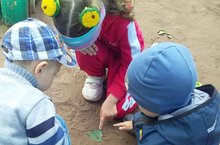 В детском саду проходит неделя "Насекомые". Во время прогулки воспитанники наблюдают за насекомыми.