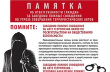 Памятка об ответственности за заведомо ложное сообщение об угрозе совершение террористических акции