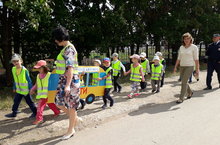 В целях профилактики пропаганды правил дорожного движения среди детей и населения воспитанники старшей группы участвовали в акции "Шагающий автобус"