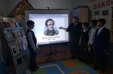 Ученики 5-6 -х классов провели нетрадиционный урок литературы по творчеству Лермонтова/Сарман гимназиясенең 5-6 нчы сыйныф укучылары Лермонтов буенча дәресне китапханәдә үткәрделәр.