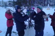 Наши гимназисты украсили самодельными игрушками ёлки около бассейна «Дулкын».
