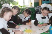 В рамках месячника «Отчизны верные сыны» учащиеся 5х классов нарисовали плакаты в защиту Мира и свободы. Они написали, что хотят жить в мире без войны. -