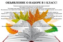 ОБЪЯВЛЕНИЕ О НАБОРЕ В 1 КЛАСС!
