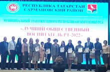 “ТРның иң яхшы җәмәгать тәрбиячесе” дигән Республика конкурсының муниципаль этабы үтте. Элеге конкурста Сарман гимназиясенең тәрбия эшләре буенча директор урынбасары Алексеева Ләйлә Рафисовна, физкультура укытучысы Харисов Айзат Фердависович катнаштылар.Алар уңышлы чыгыш ясадылар, диплом һәм истәлек бүләкләренә ия булдылар./Прошел муниципальный этап республиканского конкурса” Лучший общественный воспитатель РТ". В конкурсе приняли участие заместитель директора по воспитательной работе Сармановской гимназии Алексеева Лейла Рафисовна, учитель физкультуры Харисов Айзат Фердависович.Они успешно выступили, получили дипломы и памятные подарки.