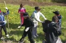 Гимназия укучылары Сабантуй мәйданын җыештыруда күмәк өмәдә катнаштылар.