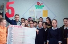 В рамках празднования 100-летия ТАССР учащиеся 6в класса принимают участие в акции "100 "5" на праздник". \ ТАССрның 100 еллыгына багышланган бәйрәм кысаларында 6нчы в сыйныф укучылары "Бәйрәмгә 100 "5 "ле" акциясендә катнашалар.