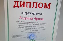 "Сарман гимназиясе"нең 5 нче Б сыйныфы укучысы Андреева Арина (сыйныф җитәкчесе Мәтҗанова Р.Г.) элемтә министрлыгы оештырган бәйгедә катнашты/Ученица Сармановской гимназии Андреева Арина приняла участие в конкурсе сочинений.