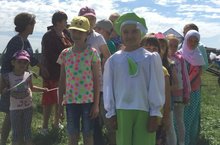 Лагерьга йөрүче башлангыч сыйныф кызлары авл сабантуенда биеделәр.