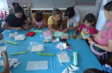 Бүген, тәрбияче апалары Гөләндәм Гөлүсовна җитәкчелегендә, балалар салфеткадан лотос чәчәге ясарга өйрәнделәр.