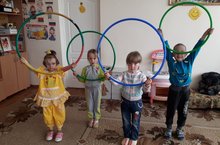 Каждое утро начинается с гимнастики.Балалар иртәне гимнастика белән башлыйлар.Аларга кызыклы һәм файдалы булсын өчен төрле материал кулланыла:шакмаклар,ком капчыклары,ленталар,обручлар.
