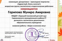 Муниципальное бюджетное дошкольное образовательное учреждение «Карашай-Сакловский детский сад" Сармановского муниципального района РТ /Татарстан Республикасы Сарман муниципаль районы "Карашай-Саклау балалар бакчасы" муниципаль бюджет мәктәпкәчә белем бирү учреждениесе