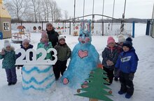 У входа на площадку нас встречает символ года - Зайка. Детям очень нравятся зимние прогулки на нашей «сказочной» детской площадке./Мәйданга керү юлында безне ел символы - Куян каршы ала. Балалар мәйданчыктагы кышкы матурлыкны бик яраталар 20.12.2022