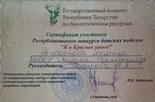 Наша воспитанница Хусаенова Ясмина получила сертификат участника Республиканского конкурса детских поделок "Я и красная книга"/ Хусаенова Ясминә кул эше белән конкурста катнашып сертификатка лаек булды. 09.12.2020