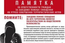 Памятки о юридической ответственности за заведомо ложное сообщение об акте терроризма, а также несанкционированное использование беспилотных воздушных судов.