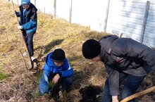 Санитар - экологик икеайлык кысаларында мәктәп яны территориясенә агачлар утырттык.