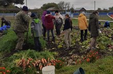 Сентябрьская погода порадовала нас тёплым солнечным деньком и мы, вооружившись перчатками, вёдрами и вилами, отправились на пришкольные участки, собирать урожай.