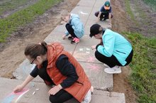 Ребята рисовали лето на асфальте.
