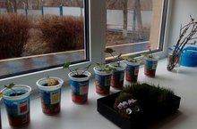 Күтәмәле мәктәбенең мәктәпкәчә белем бирү төркемендә балаларны кечкенәдән эшкә өйрәтәләр. Тәрәзә төпләрен балалар карап үстергән гөлләр бизи.
