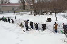 В МБОУ "Кутемелинская ООШ" начались работы в рамках санитарно-экологического двухмесячника. Ученики совместно с учителями, в виду опасности половодья, расчистили снег, образовав дорожку для воды.