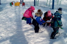 Кыш үзенең кояшлы матур көннәре белән балаларны сөендерүен дәвам итә. Бүген исә Күтәмәле мәктәбенең мәктәпкәчә төркеменең зурлары апаларына үзләренең уен мәйданчыгын кардан чистартырга ярдәм иттеләр, ә кечкенәләр көрәк тотарга өйрәнделәр. Аннан соң туйганчы таудан шудылар, хәрәкәтле уеннар уйнап, сәламәтлекләрен ныгыттылар.