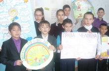 7 сыйныф укучысы Файзрахманова Әдилә укучылар белән балаларның хокуклары турында сөйләде, алар бергәләп плакатлар ясадылар.