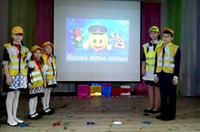 Профилактика детского дорожно- транспортного травматизма - проблема всего общества. Знакомить детей с правилами дорожного движения, формировать у них навыки правильного поведения на дороге необходимо с детства, так как знания, полученные в детстве, наиболее прочные, правила , усвоенные ребенком, впоследствии становятся нормой поведения, а их соблюдение - потребностью человека. Каждый год в районе проводится конкурс агитбригад среди учащихся начальных классов " Красный. Желтый. Зеленый" . Агитбригада " Светофор" нашей школы активно участвует в нем. Сегодняшнее выступление посвящалось безопасности дорожного движения ,важности использования ремней безопасности и удерживающих устройств при перевозке детей.