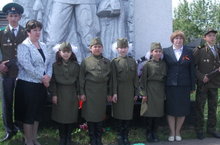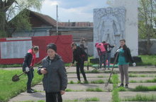 Мәктәп укучылары бәйрәм алдыннан һәйкәл тирәсен чистартуларын дәвам итәләр